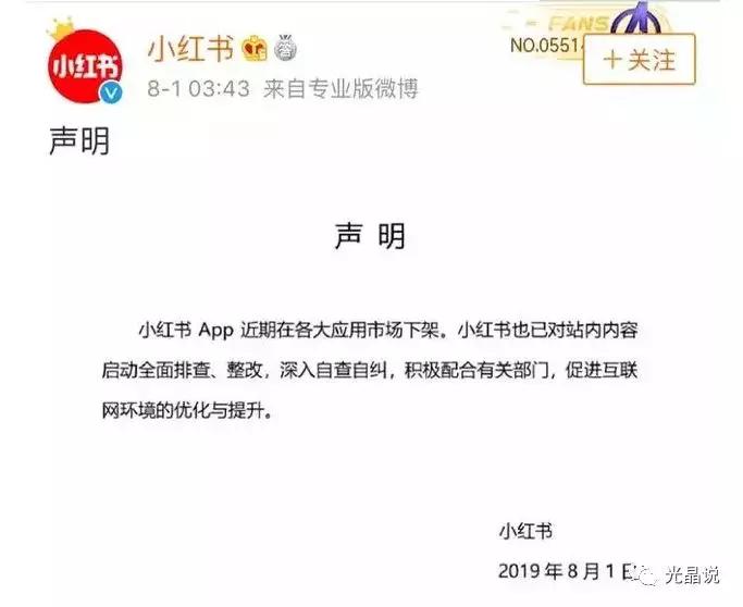8月1号凌晨,小红书就APP在各大应用市场下架一事在官方微博发表声明。