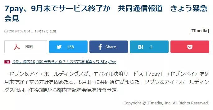 事情闹了近一个月,这个月初7-11便利店的母公司日本柒和伊控股公司终于宣布,将在9月底彻底结束7 pay支付服务。