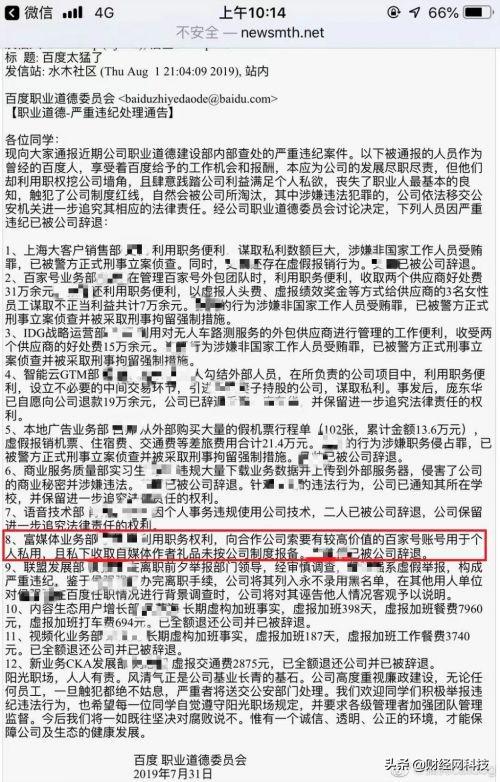 百度继续反腐,辞退14名违纪员工