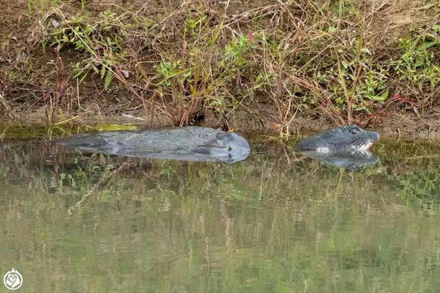 你会见到一头近2米长像黑色巨石一般的大鳖,在池塘里慢慢的游泳。它在大多时候潜在水下,这时你很难发现它。但每隔几分钟,斑鳖就会露出水面换个气。只见它把猪一样的鼻子戳出水面,随后是方形的大口,在水中吐着泡泡。它会在水面吸上一大口气,然后再次沉入水中。