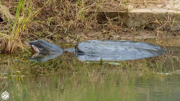 “看,这就是斑鳖。这是全世界最珍稀的龟鳖,乃至全世界最稀少的动物,离灭绝就只剩一线。