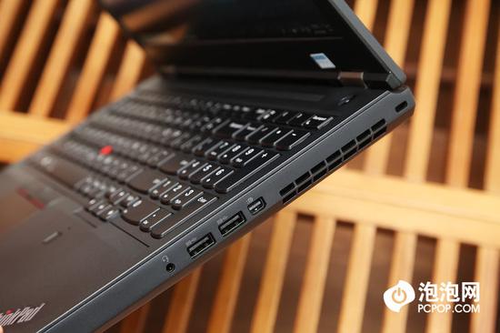 机身右侧配备了一个麦克风耳机二合一接口、两个USB 3.0接口以及一个Mini DP接口。