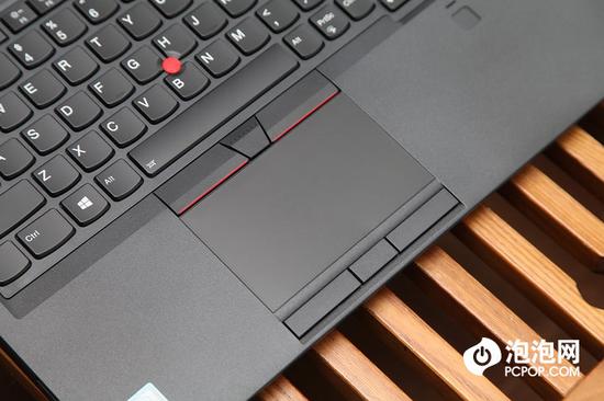触摸板部分依旧是ThinkPad最经典的搭配,支持多点触控的同时有着良好的手感,在保留经典的三键的同时在触控板下方增加了三个按键。这三颗按键相对更硬一些,但手感依旧舒适,三颗按键经过磨砂处理,触感良好。