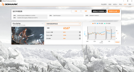 NVIDIA Quadro P2000 在3D MARK Fire Strike的测试中取得了6810的图形分数。