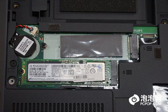 图中我们可以看到M.2固态硬盘槽位,两条插槽其中一条已经装配有一条三星1TB容量SSD固态硬盘,型号为PM981,用户可以自行使用M.2接口的固态硬盘对电脑硬盘容量进行扩展。