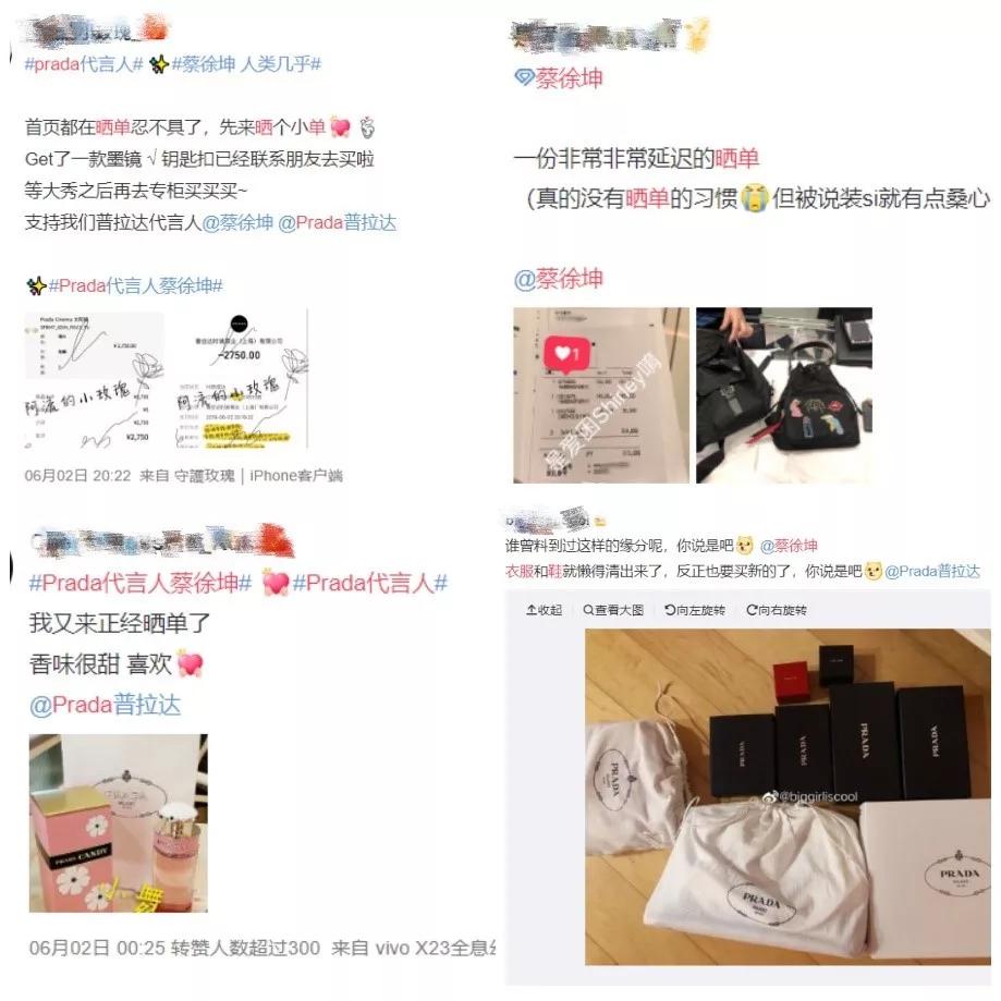 蔡徐坤粉丝在微博发布的大量Prada晒单