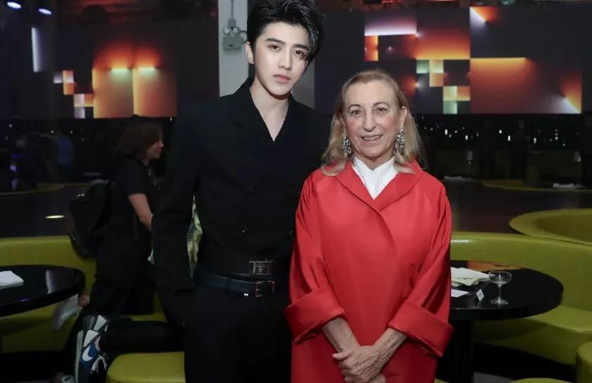蔡徐坤与MiuMiu创始人Miuccia Prada合影