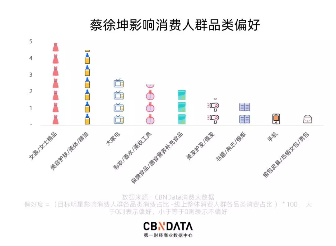 在受蔡徐坤影响的消费人群中,女装、美容护肤和大家电是她们普遍乐意购买的商品,保健食品、杂志、手机等也是她们主要偏好的品类。这些年轻人能购买得起贵价商品,并且在以蔡徐坤为核心培养着自己的消费习惯。