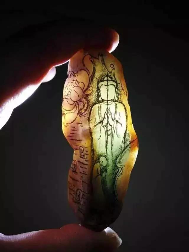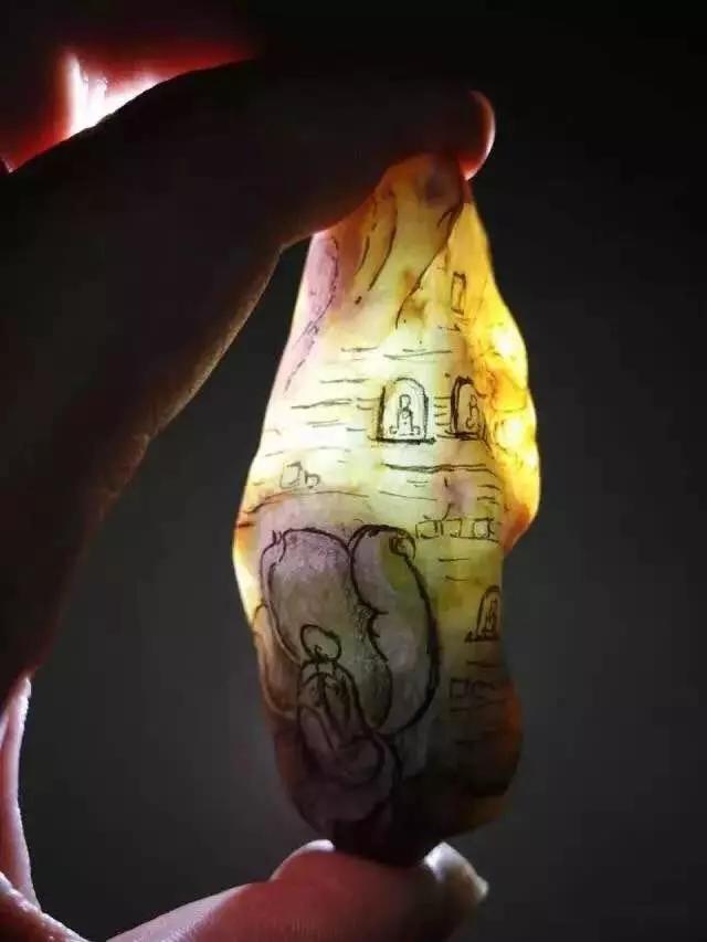 手中这块原石种老水润,油性感十足,缺点就是细裂有很多,这么好的料子要如何处理纹裂或依据纹裂来设计是雕刻师傅首要考虑的。