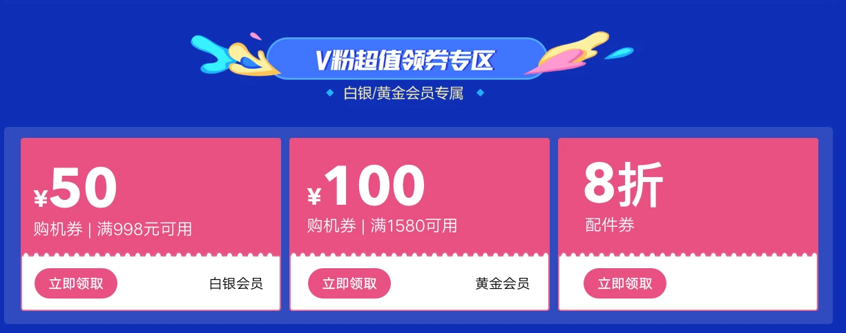 不得不说,vivo的优惠力度真的诚意满满。除了直降活动以及免息活动之外,vivo还有V粉秒杀手机、配将5折起、整点购机送超值赠品、超级专享会员权益(爱奇艺VIP6元代金卷、价值470元双人体检、价值186元的游戏礼卷以及小V手机主题)以及V粉超值抽奖等活动。