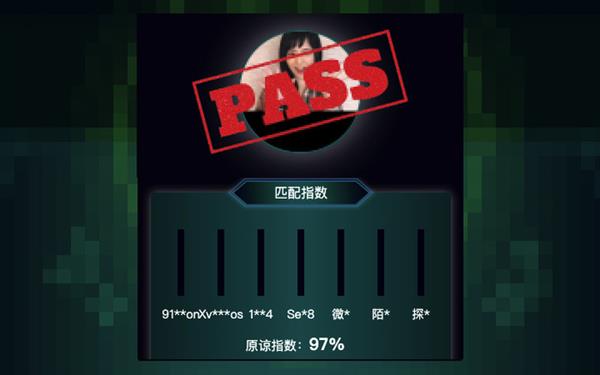 在进行到所谓的“人脸解码”和“智能匹配”阶段,页面上则是事无巨细地把整个过程和你演示了一遍。当你看到“Se**8、陌*、探*”这些敏感字眼时,肾上腺立马分泌压力荷尔蒙,同时自动脑补出“哇,真的在匹配”的过程。