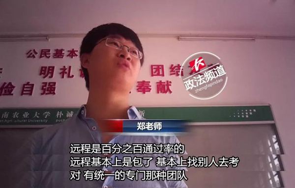 郑老师表示,学员只要报考网络远程教育,他能保证学员全部通过考试,主要做法就是找人代考。如果是教育中介公司负责组织代考,可以获得额外收费。