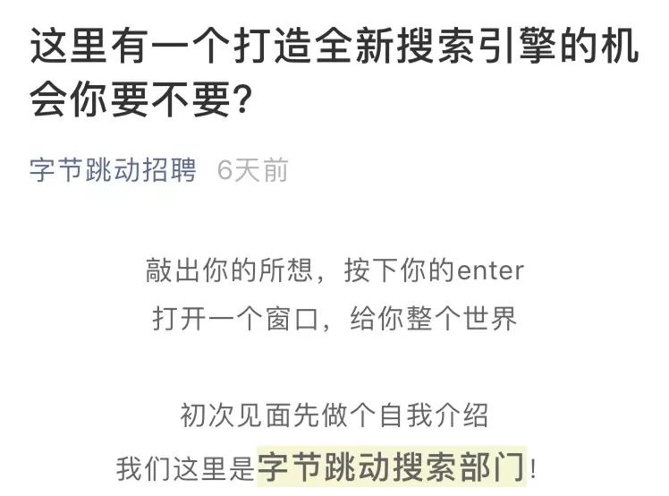 而随着字节跳动的招兵买马,相信要不了多久,该搜索引擎会以更加证实的方式与大家见面。