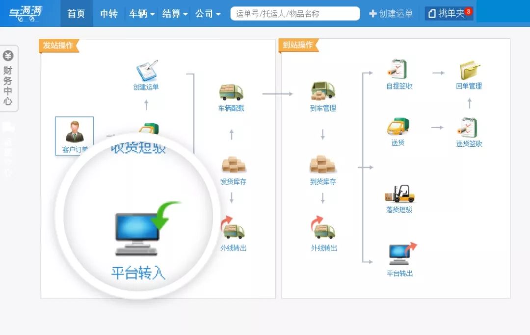 车满满的SaaS产品中,哥伦布是基于配置化的功能模块,针对不同类型的物流企业,可以选择其中相应的功能模块进行排列组合即可提供服务。