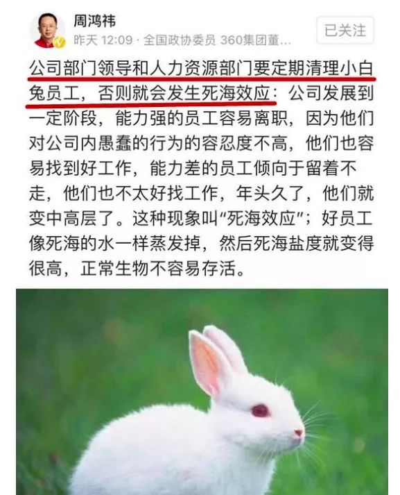 360的周鸿祎曾说过,要定期清理“小白兔”员工。