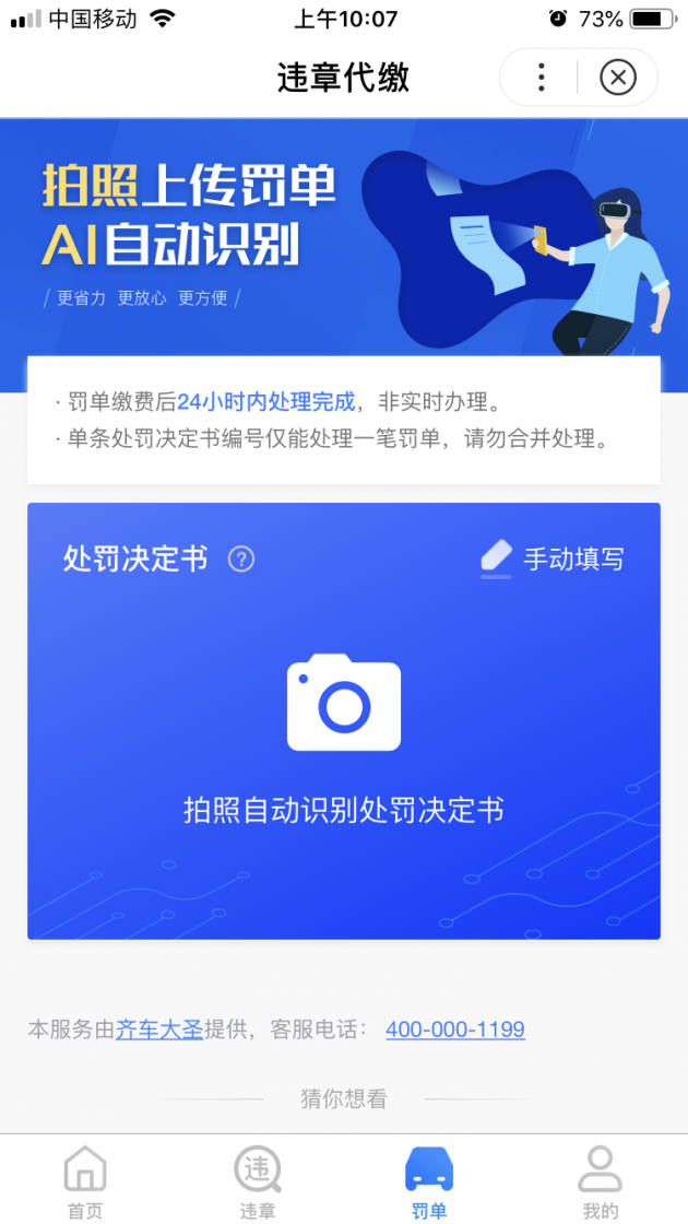 (基于百度图像识别、证照识别技术,“齐车大圣查违章”小程序可以直接通过拍照自动录入车主信息、罚单信息等)