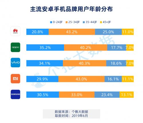 同时,从用户的年龄分布来看,各个手机品牌用户的年龄组成差异显著,OV手机用户中年轻人居多,其中35岁以下人群占比达到约75.0%。三星用户年龄分布较均匀,35岁以上的用户占比达到36.5%,为报告涉及的四家品牌之最。