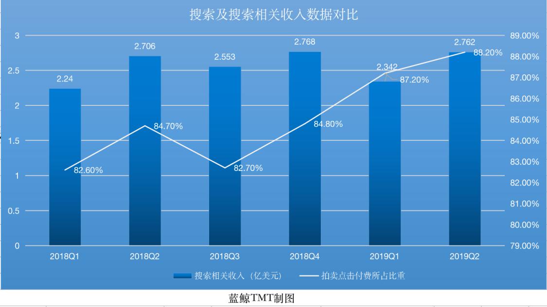 据搜狗最新公布的财报显示,其搜索及相关收入为2.762亿美元,同比增长2%。这一增长主要是由于基于拍卖的付费点击服务的增长。当季,基于拍卖的点击付费服务占搜索和搜索相关收入的88.2%,而2018年同期为84.7%。