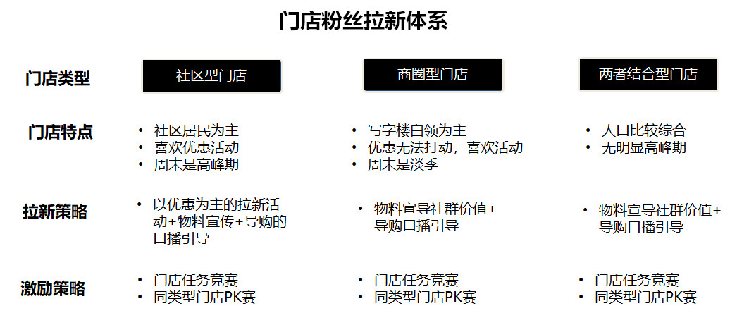 从策略图我们可以看到,在拉新方面无法做到千篇一律,不同商圈、社区的用户特征是完全不同的,这就在拉新时候向顾客传递的话术必然存在差异。