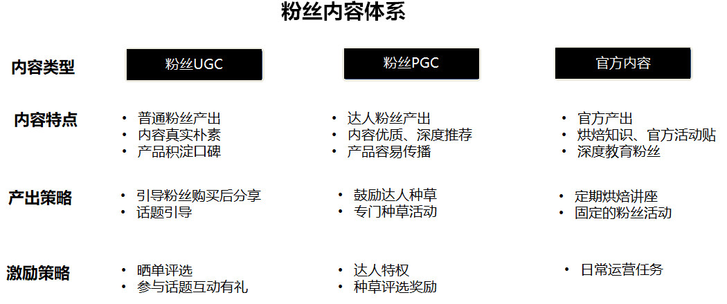 首先是经常产出型内容和不产出型的分层,对粉丝做好标签管理,针对产出型的要逐渐往达人层级引导;这样就形成一个普通粉丝贡献UGC内容,对产品形成一个口碑的沉淀,达人粉丝贡献PGC内容;