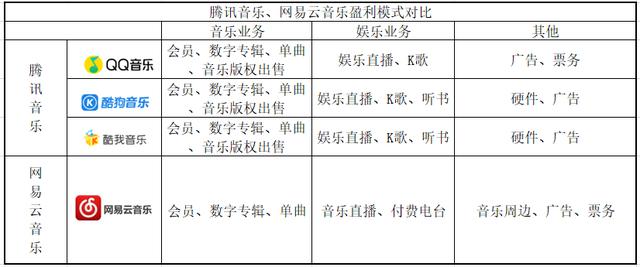 网易云音乐就不存在对内竞争情况,所以,它几乎包含了腾讯音乐所有的盈利点,但腾讯音乐并没有一款产品跟网易云音乐是一样的。