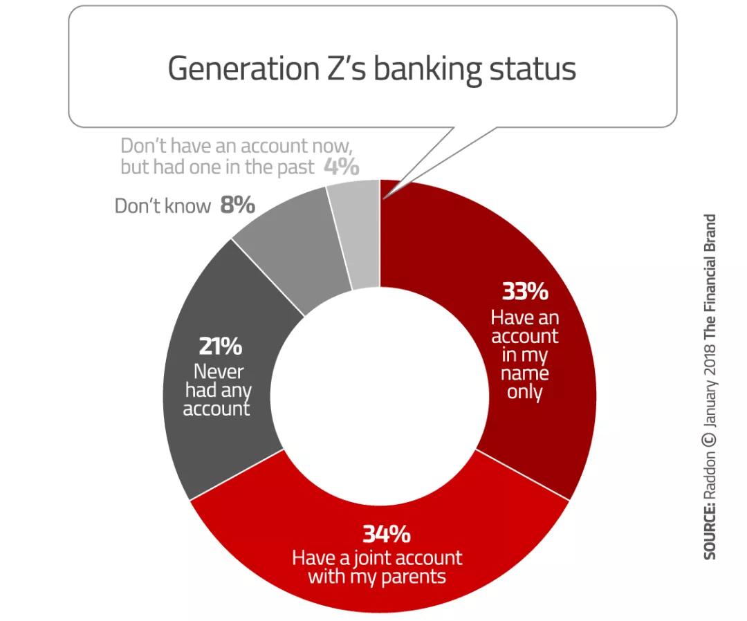 预计到2020年,Gen Z一代人会占所有银行客户的40%。目前,Gen Z的消费能力达到440亿美金,但是只有47%的Gen Z人群使用大银行提供的服务。Gen Z的客户平均每人负债$8000, 50%以上的人缺少最基本的财务规划知识。