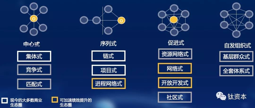 第二个概念是生态。现有关于生态系统的描述还是比较单调的,因为更多强调的是生态概念。企业如何定位,商业效能如何发挥是由企业或资源禀赋所决定的,这些资源禀赋决定了能构建或能参与什么样的生态。
