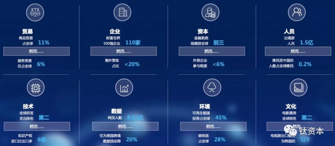 然而在金融、贸易、文化等子领域的发展,除了体量的增长外,质量、内在结构还有一定的欠缺。目前中国与世界的经济联系正在发生一些改变,这个联系的增强和减弱都可能引起巨大的经济价值波动。