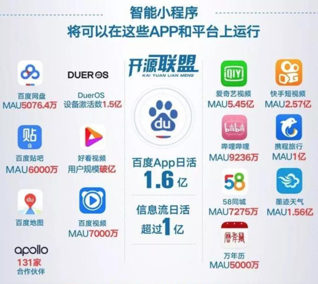 庞大的集团军作战思路等于把中国半个互联网圈的流量聚合在了一起。这也是为什么百度小程序月活跃用户达到2.7亿,入驻小程序数量超过15万,成了国内成长最快的小程序生态。