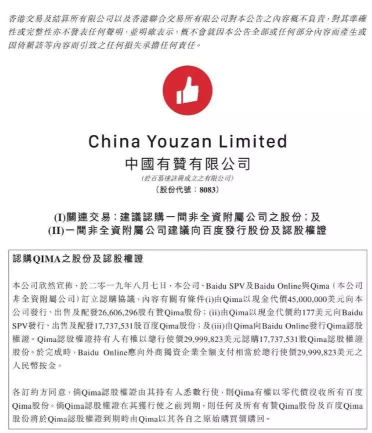 过去行业总公认有赞仅仅是在微信生态内成长起来的企业。然而另人意外的是,8月8日,有赞(08083.HK)发布公告称,获得百度的投资。
