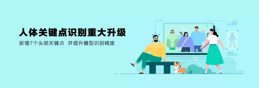新增7个头部关键点,合计输出21个关键点信息。同时优化接口参数,返回人体坐标框和每个关键点的置信度分数,在应用时可结合分数,过滤掉置信度低的误识别“无效人体”,应用更加灵活。