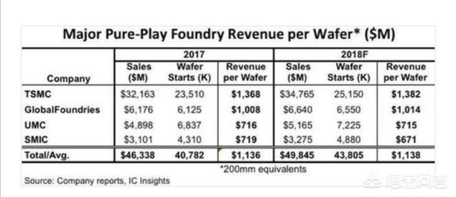 在了解7nm光刻机产能之前我们先来看下目前主要芯片代工企业的收入水平。