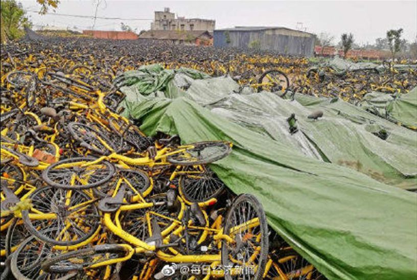 如今,废弃的ofo小黄车被以5元一辆的价格回收,要知道,共享单车的平均制造成本可是达到300元一辆,现在却只值5元。