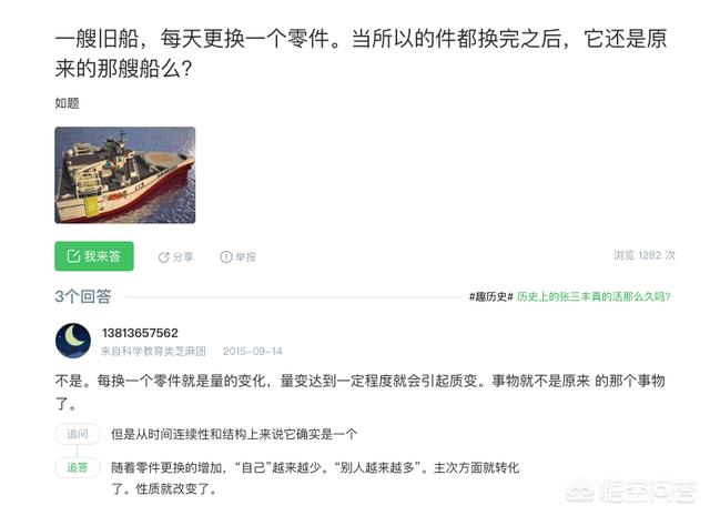 就像那个著名的假说,一条船每天换一个钉子,一块木板,一年以后全部换完,他还是原来的船吗?