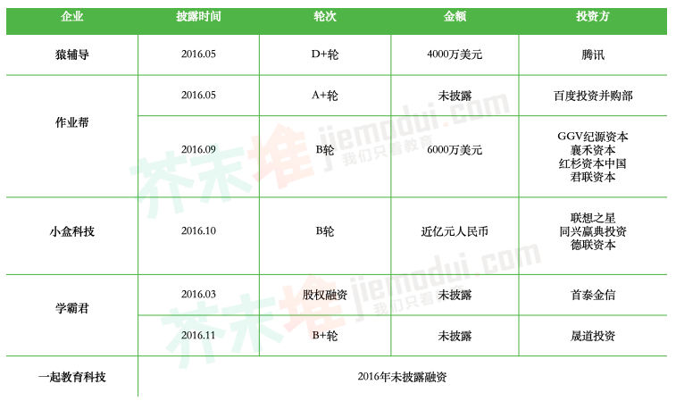 在行业洗牌的2016年,直播答疑的变现方式给资本带来希望,使得几家头部作业类产品基本都拿到近亿元融资。不过,大家也都试错出一个道理:“在教育行业,轻模式走不通,重模式是唯一选择。”