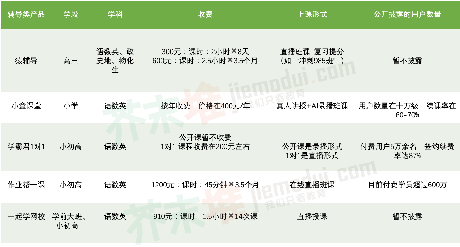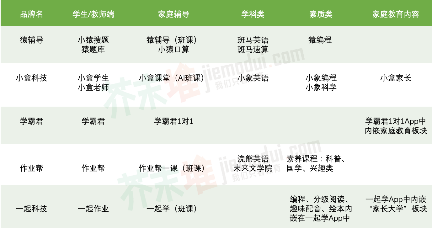 - 作业布置类。以一起教育科技、小盒科技为例,通过给体制内老师提供作业布置、批改和答疑的解决方案,获得海量校内流量。