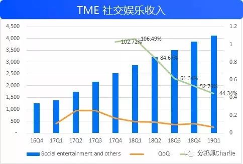 注意,TME的直播收入增速,同比已经下滑到了44.34%的水平了。