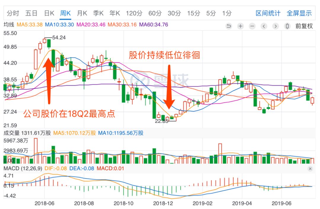 从数据来看,陌陌直播收入,继18Q3后,再次出现环比下滑。于此同时公司股价在反应这公司直播业务的未来趋势: