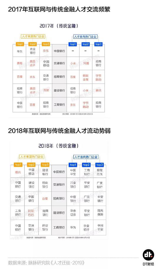 不过,由于各传统行业掀起的“互联网+”热潮正在退烧,2018年互联网行业与金融业、电信、房地产等传统行业间的人才流动性明显减弱。如今,不管是银行招人,还是银行人才择业,都呈现出在金融圈内流动的特点。互联网人再要想改行,难度要比之前大许多。