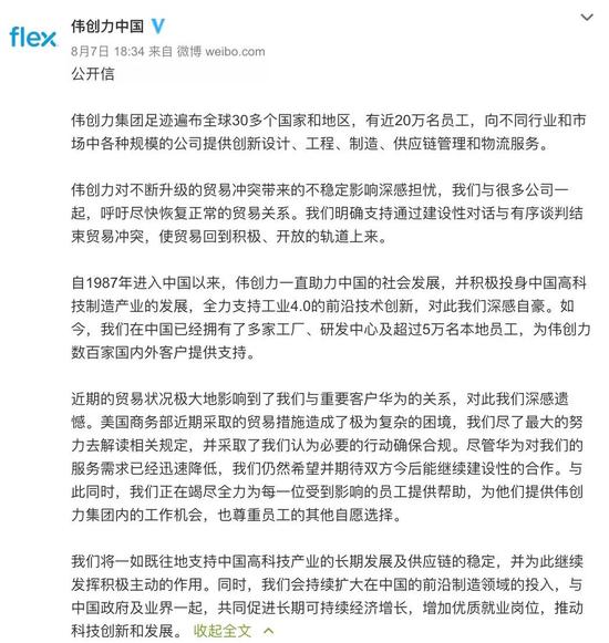 伟创力在微博上发表了中文公开信,将扣押华为生产资料的行为解释为合规需要。