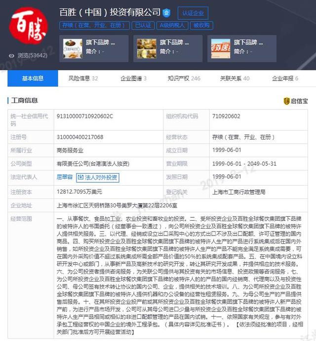 在我们分析必胜客的时候,可能需要对必胜客进行一分为二的看待,根据启信宝的数据,在百胜集团内部已经把自己拆分出来,百胜中国作为一家独立的公司上市,而像美国等地的必胜客依然是由百胜集团来掌控,所以我们要进行一分为二的判断,对于中国市场和非中国市场进行考量。
