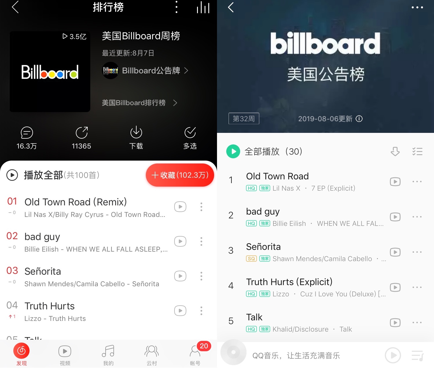 即便在国内,网易云和 QQ 音乐等平台也会每周更新美国 Billboard 的排行榜资讯,B 站上比较受欢迎的字幕版每周 Billboard 视频也有将近 10 万播放量和数千条弹幕,有一定固定受众。