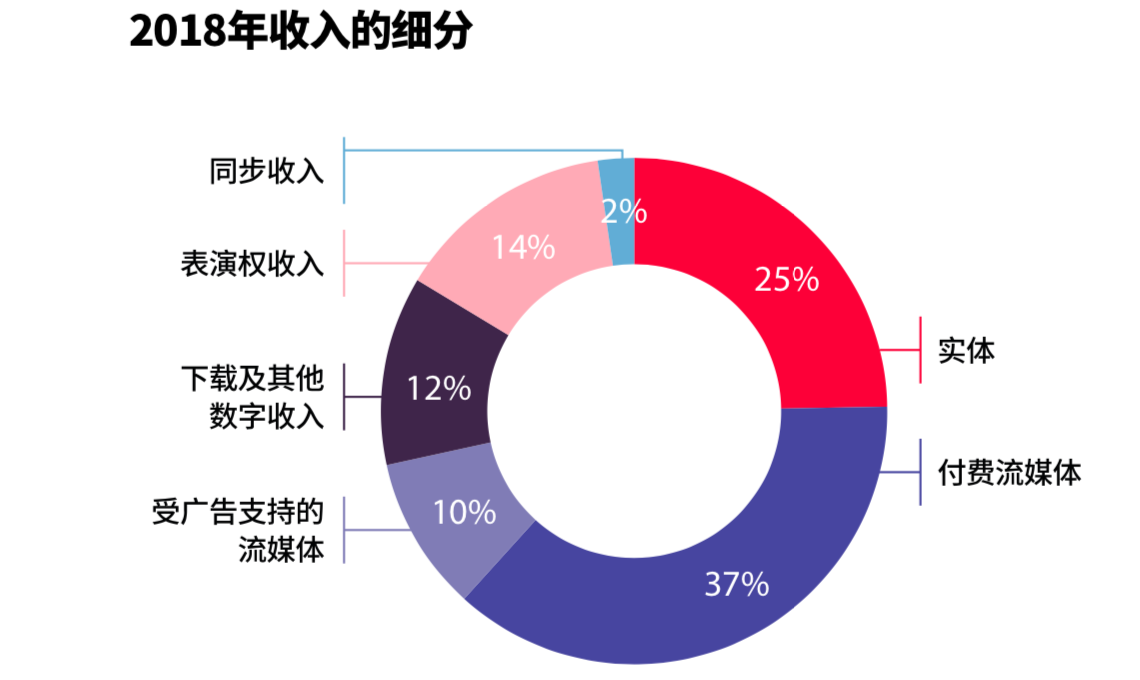 国际唱片业协会(IFPI)于 中指出,2018 年流媒体以 47% 的占比成为音乐产业中为艺人带来最高收入的部分。