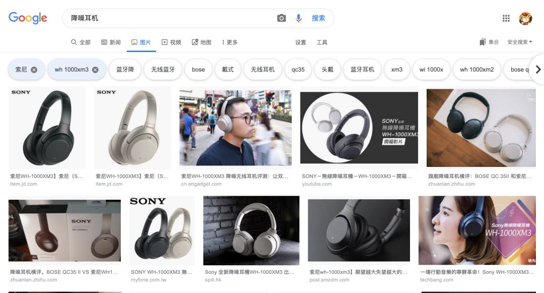 这个功能的厉害之处在于,它仿佛能猜到你在想什么。比如搜索数码产品时,会显示产品类型、品牌、型号,范围是一步步深入的。用户需要做的就是点击关键词,剩下的交给 Google 来完成。