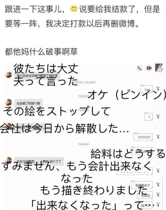 Yuka告诉我还有更惨的《战姬收藏》的服务器“维护”第二天,Yuka就在群里看到一张截图,内容是一位中国的游戏画师被《战姬收藏》的运营方约稿,但对方以解散公司为由拒绝支付画师稿费。