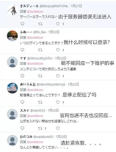 到了“维护”的第二天,情况依旧如此,一些进不去游戏的日本玩家开始在官方推特下四处询问,但也如石沉大海。