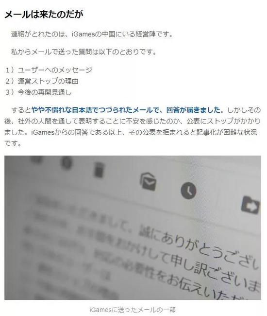 一位日本网友表示,自己和iGames在中国的运营团队取得了联系,对方发了一篇用不怎么熟练的日语写的邮件,大概解释了一些事情,但是由于不愿公开,他也没法发出来——《战姬收藏》的跑路究竟是因为什么,之后又会如何,仍然是个谜。