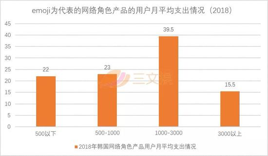2018年韩国用户在网络表情这类网络产品上的支出主要集中在1000-3000韩元。估算平均每人每月要支出1483韩元,约合人民币8.6元。