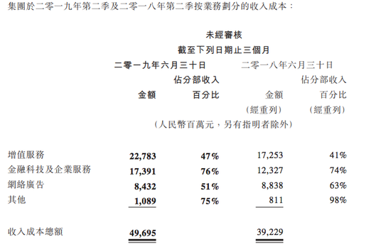 另一点值得关注的是,金融科技及企业服务的成本占比为76%。去年Q2,该部分收入成本为123.27亿元,成本占比也达到了74%。换句话讲,腾讯的金融科技及企业服务的毛利率比较稳定。
