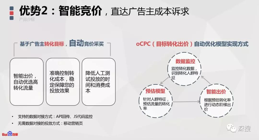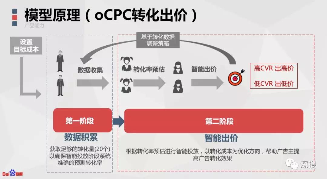 随着信息流平台大数据技术日趋成熟,很多平台从测试OCPC模式转变成熟的OCPC投放模式,这样子SEM工作人员的工作又可以下轻松很多了。先个大家普及下什么是OCPC,我先拿百度OCPC作为例子为大家解释一下这个定义:OCPC是一种AI智能投放模式,同时支持凤巢和原生投放。系统基于对广告主转化数据的对接和深度理解,智能实时预估每一次点击的转化率并基于竞争环境智能出价,强化高转化率流量的获取,弱化低转化率流量的展现,以帮助广告主控制转化成本、提升转化数量并提升投放效率。